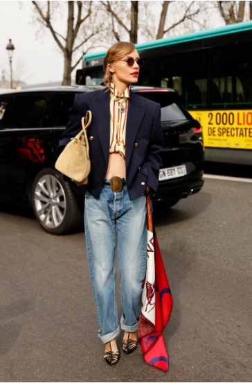 Именно стрийтстайл визиите доказват истинския му потенциал: скъсеният блейзър се комбинира с лекота както с дънки и ленени поли, така и с елегантни панталони или по-небрежни аутфити, като естествено се вписва във всякакви ситуации – от сутрин до вечер. Актуалната цветова палитра варира от класическите черно и сиво до бяло и меки неутрални тонове, идеални за топлите месеци.