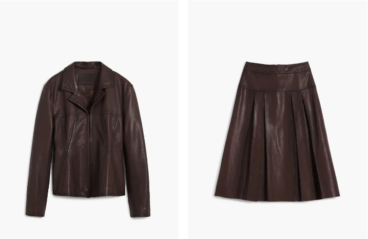 Джена Ортега отново впечатлява в творение на Desigual, след като вече беше забелязана в ефектна тъмносиня раирана рокля на филмовия фестивал във Венеция. Всеки неин избор от марката изглежда напълно естествен и хармоничен. Този път актрисата заложи на вдъхновен от 90-те ансамбъл от колекцията Funshion пролет-лято 2025 Taken Seriously. Тя избра кожена пола и яке в топъл кафяв нюанс – препратка към емблематичния стил на Desigual. Визията беше завършена с бял топ с висока яка, черна чанта и елегантни обувки с каишки, които подчертаха силуета ѝ.