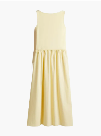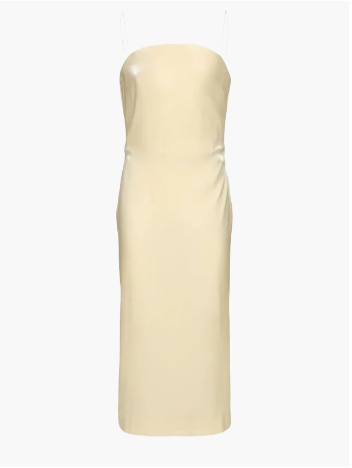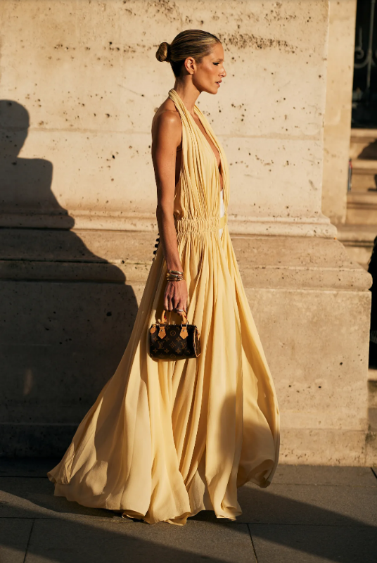 Ако има един цвят, който тази година измества класическото бяло, това е масленожълтото. Всичко започна с Кейт Хъдсън и нейната емблематична сатенена рокля във филма Как да разкараш гаджето за 10 дни (2003) – визия, която и до днес се смята за символ на съвременната елегантност. Този топъл, мек нюанс носи със себе си усещане за изтънченост и свежест, далеч от по-предвидимите черно или бяло. През лятото на 2025 г. той се завръща с пълна сила – в сатен, лен и коприна, под формата на рокли, които изглеждат сякаш са създадени за златните часове на деня.