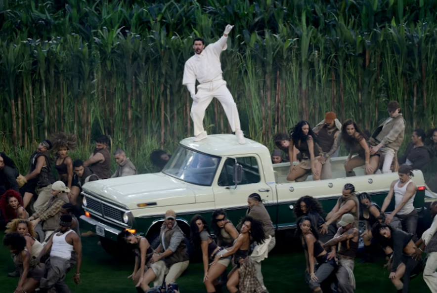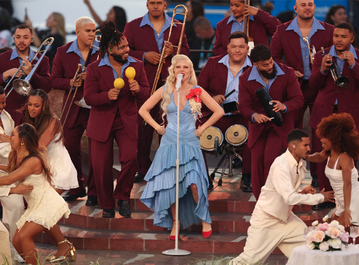 Певицата, която наскоро триумфира на наградите „Грами“ 2026 с отличия за Най-добър поп вокален албум и Най-добър денс поп запис, се появи изненадващо на терена редом до Bad Bunny. Двамата изпълниха впечатляваща бигбенд версия на хита ѝ Die With a Smile, превръщайки шоуто в един от най-запомнящите се моменти на вечерта.