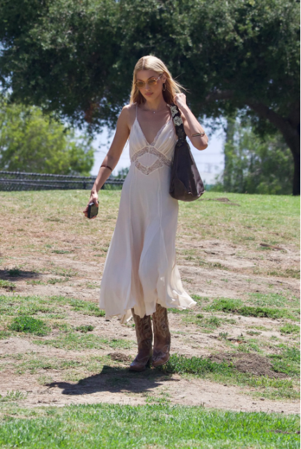 Забелязана в Лос Анджелис, Бела Хадид сякаш е избрала по-спокойно лято, с по-малко публични изяви – нещо, което със сигурност липсва на почитателите ѝ, тъй като стилът ѝ често служи за вдъхновение. Но този тоалет компенсира отсъствието ѝ – в него се преплитат две от най-актуалните тенденции в модата.Бежовата дантелена рокля от Mango носи бохемско усещане и внася деликатност и лекота във визията ѝ. За контраст, Хадид е комбинирала роклята с кафяви ботуши до глезена с леко уестърн вдъхновение – препратка към каубойската естетика, която напоследък намира все повече място на модните подиуми, включително и в Париж.Въпреки че комбинацията може да изглежда твърде фестивална за ежедневието, велурената чанта в земен тон добавя баланс и завършеност на тоалета. Визия, която съчетава женственост и характер – точно в духа на Бела.