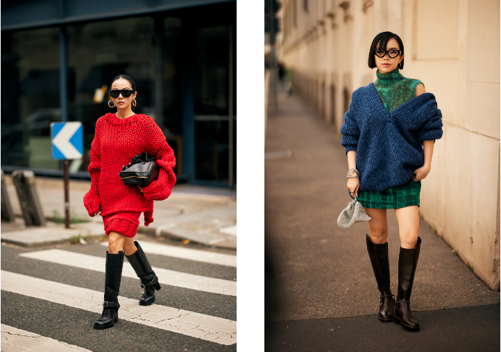 Палитрата от цветове този сезон е изключително богата – от класическите нюанси на екрю и черно, до по-смелите тонове на червено и виолетово. Не липсват и chunky пуловери с принт, идеалният избор за тези, които искат да придадат съвременно излъчване на визията си.