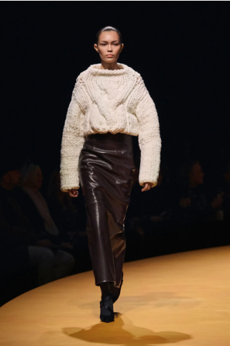 С обло деколте или поло яка, с плетена текстура или четкана материя – едноцветният chunky пуловер е онзи елегантен и класически елемент, който задължително трябва да присъства в есенно-зимния гардероб на всяка модна дама.Модните подиуми го потвърждават: възможностите за комбиниране са безкрайни – има вариант за всяка личност и стил.Simkhai и Khaite залагат на неутралните, изчистени цветове, докато Dries Van Noten и Balmain представят ярки, енергични версии в червено и оранжево, придавайки на класическия пуловер съвременен, дръзък дух.