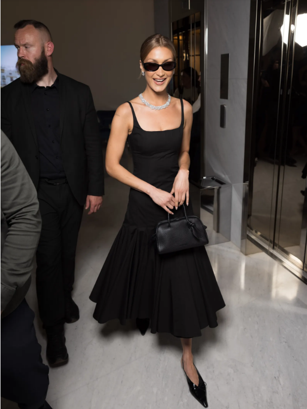 Що се отнася до аксесоарите, Бела Хадид сякаш загатна какъв ще бъде модният ѝ подход през следващите дни. Тя носеше винтидж обувки Yves Saint Laurent с апликации на сърца, открити в Sororité Vintage, и чанта Manhattan – един от най-желаните модели на модната къща. Като дългогодишна муза на Saint Laurent, Бела вече бе избрала бранда за червения килим миналата година, тогава с прозрачна рокля, съчетаваща сексапил и елегантност – визия, която тази година едва ли ще повтори заради по-стриктния дрескод в Кан. След впечатляващото си появяване с тоалет от Saint Laurent и бижута Chopard, очакваме с интерес какво още ще покаже – както на червения килим, така и на Кроазет.