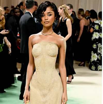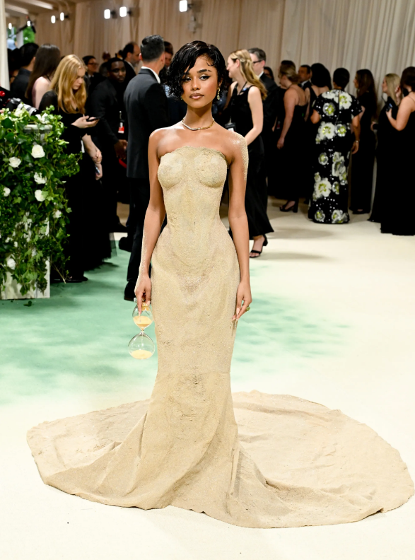 Визията на Тайла от Balmain беше толкова сложна и деликатна, че се наложи певицата да бъде изнесена по стълбите на емблематичната Met Gala. Певицата носеше и пясъчен часовник, любезно предоставен й от луксозната модна къща. Тя носеше и златно колие от Alexis Bittar.