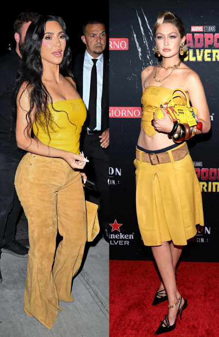 Докато Джиджи Хадид остана вярна на дефилето на Miu Miu, носейки цялата визия , Ким Кардашиян прие само горната част, съчетавайки я с вталено неохипи долнище от велур, чанта Birkin и... малкото си куче на име Суши. Шпицът джудже беше в същия цвят като нейния Hermès. Съвпадение?
