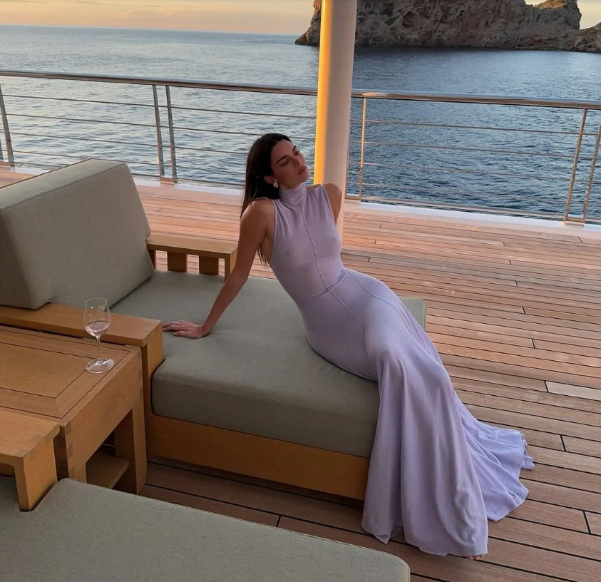 Няколко модела вече възприеха актуалния цвят. Кендъл Дженър представи лавандуловия нюанс в дълга рокля с висока яка, като за аксесоари заложи на семпъл чифт блестящи обеци, напълно достатъчни, за да завършат визията ѝ.