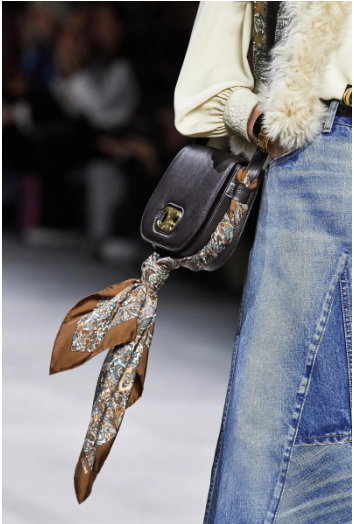 През последните няколко сезона коприненият шал се утвърди като незаменим летен акцент, който неизменно се завръща в модата от Париж до Токио. Дизайнерите не спират да експериментират: при Celine той е артистично преплетен около актуалната It-bag, докато на ревюто на Diesel за пролет-лято 2025 целият аксесоар е буквално обвит в шал – ефектен и креативен подход, който превръща всяка чанта в израз на индивидуален стил.