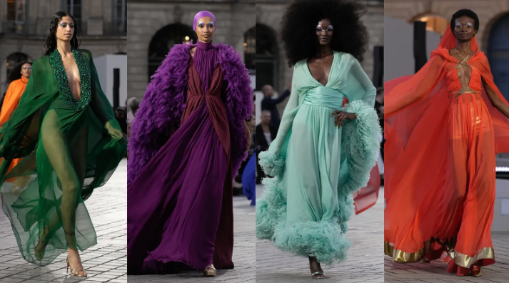 Самият подиум - който се разгърна на прочутия площад Вандом, заобиколен от ателиета за висша мода в центъра на 1-ви район в Париж - беше пълен с модели на емблематични френски къщи като Chanel, Dior, Saint Laurent, Alaïa, Balenciaga и Givenchy. Модното ревю, стилизирано от Иб Камара и Карин Ройтфелд, ни даде представа за това какво е важно в момента в модата - което може да бъде дестилирано в шест тенденции.