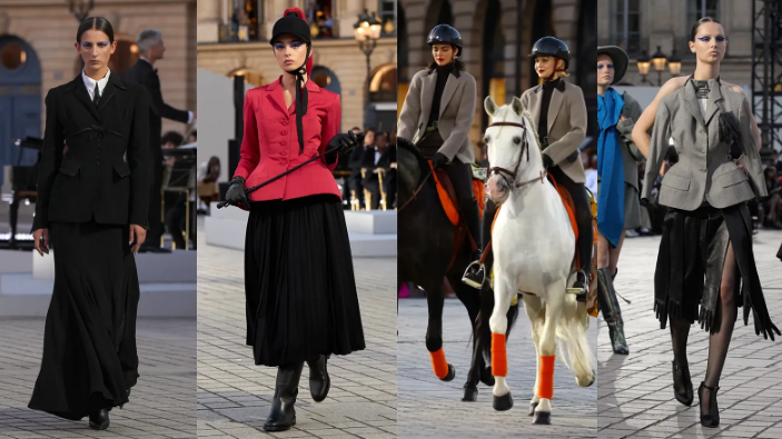 Световете на модата и ездата винаги са били преплетени; не е тайна, че много жени в индустрията са ездачки (Бела Хадид, Еди Кембъл и Мери-Кейт Олсън, за да назовем само няколко). Какъв по-добър начин да почетем тази история от произведенията на френските модни къщи Dior и Hermès? Силуетите на модния подиум наподобяваха тези от 50-те години на миналия век, с вталени сака и пълни поли.