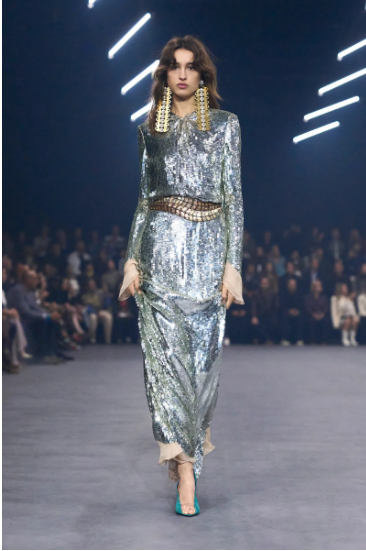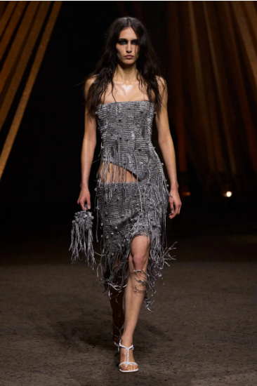Подиумите за пролет–лято 2026 бяха залети от усещане за свобода и празничен дух. Valentino, воден от Алесандро Микеле, изрази своя емблематичен бароков стил чрез дълга, искряща сребриста рокля. В Schiaparelli Даниел Роузбъри даде нов живот на slip роклята с ажурен дизайн, напомнящ ризница. McQueen заложи на дръзка, деконструирана визия, докато Gucci представи ефектна мини рокля тип туба с ослепителен блясък.