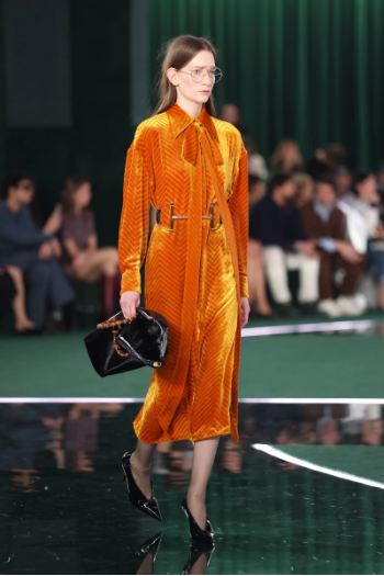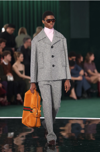 Gucci откри Седмицата на модата в Милано есен-зима 2025-2026 г. с ревю, продуцирано от студиото, няколко седмици след обявяването на напускането на Сабато де Сарно, бившия артистичен директор на италианската къща. Този сезон ревюто се състоя в Superstudio Maxi, пространство в южната част на столицата. Тонът беше зададен още с пристигането им: орда фотографи светкаха с фотоапаратите си в опит да направят най-добрите снимки на знаменитостите - от Джесика Частейн до Джулия Гарнър, без да забравят K-Pop звездите като Джин от групата BTS, които бяха дошли специално за случая.Подиумът, създаден в чест на основателя на модната къща Гучио Гучи, отдаде почит на емблематичното преплетено лого с двойно G, което тази година отбелязва своята 50-годишнина. Колекцията представи последователно мъжки и дамски силуети, които се движеха в ритъма на оригинална композиция от композитора и диригент Джъстин Хурвиц, изпълнена на живо от оркестър.Завръщайки се към концепцията за смесени ревюта, Gucci изследва темата за двойствеността, вдъхновена от италианската „sprezzatura“ – термин, първоначално отнасящ се до мъжкия стил, който изглежда небрежен, но всъщност е внимателно премислен. Тази „изучена лекота“ напомня за френското „je-ne-sais-quoi“, което така добре описва неподправения парижки шик. В този дух силуетите в колекцията са едновременно контрастни и хармонично допълващи се.