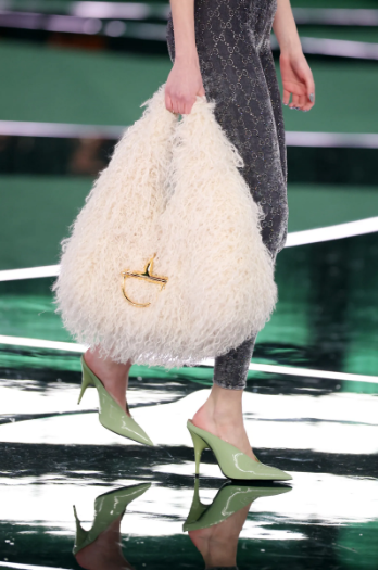 Изпълнено с носталгия, студиото използва и водещите кодове на къщата, разработени през годините от основателя на къщата, както и от бившите ръководители на италианската марка. По-специално, студиото съживява характерната за Gucci чанта Horsebit от 1955 г., вдъхновена от света на конния спорт и разпознаваема по верижката във формата на конска опашка, която тази година празнува своята седемдесетгодишнина.