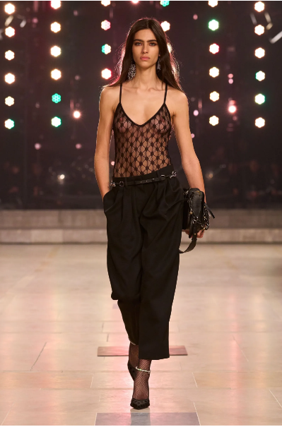 slip пола създава още по-дръзка визия. Забелязан на множество модни подиуми, този тренд се очертава като най-горещия секси акцент за празниците в края на годината.За ревюто си есен–зима 2025–2026 г. Isabel Marant представи дантелен прозрачен топ в монохромна визия, подчертана с няколко сребристи аксесоара. Ferragamo пък заложи на модел с дълги ръкави, комбиниран с текстурирана пола.