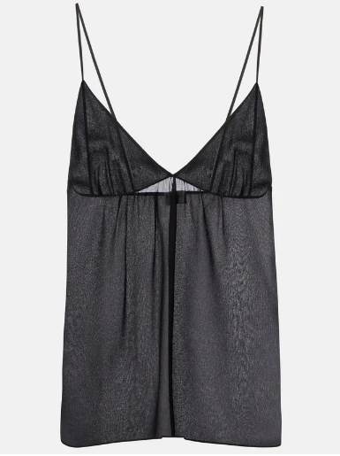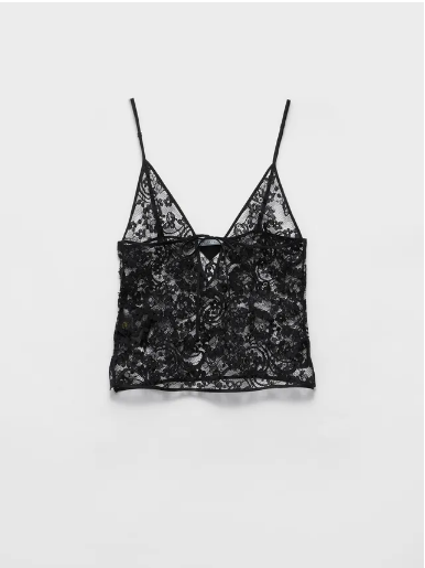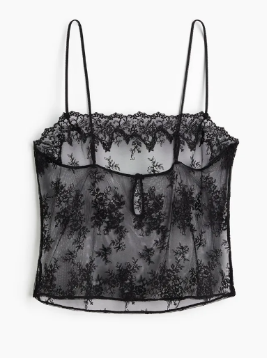 Сбогом на малката черна рокля! Тенденцията „бельо“ отново се настанява в гардероба ни с прозрачния топ. Секси елемент с безпогрешен ефект, той е сигурният избор за посрещане на Новата година. Едновременно ултрамодерна и смела, тази тенденция се проявява в тъмни нюанси, които разкриват тялото с елегантност.Комбиниран с широки дънки или елегантен панталон, той балансира секси излъчването си, а съчетан със сатенена