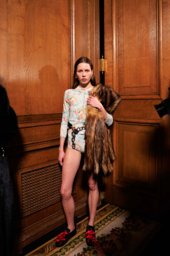 Този сезон тя умело преплита миналото и настоящето, вдъхновявайки се от собствените си архиви. Черпи елементи от есенно-зимната си колекция 2021-2022, в която кожата заема централно място, и от есен-зима 2018-2019, когато си сътрудничи със студиото на Луиз Буржоа. Водена от носталгия, дизайнерката се обръща към символиката на баснята „Заекът и костенурката“, използвайки я като основа за разказа си. С този приказен подход тя преплита ключови моменти от историята на модната си къща, основана през 2010 г. На подиума моделите се появиха с плюшени зайци, превърнати в шалове и чанти, а изкуствената кожа доминираше в колекцията, оформяйки сутиени и миниполи.