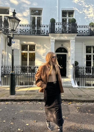 Тази пола не е само основна, но и ще бъде блестяща основа за много тоалети през цялата година. Роузи ХУ я е направила напълно есенна с деколте, огромно яке и ботуши, което е цялото вдъхновение, от което се нуждаете в момента.
