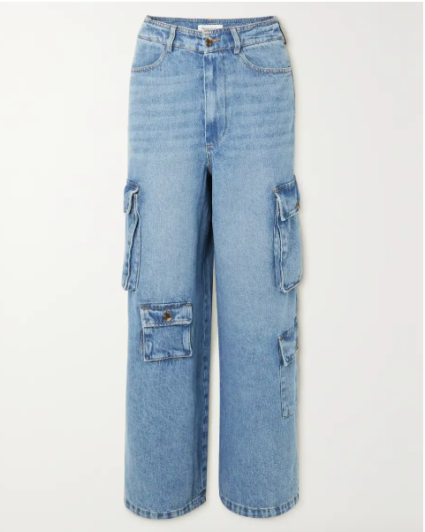 Бледите дънки с широки крачоли на Axel Arigato, които са с почти съобразена талия, са идеалното начало на тенденцията за карго дънки.