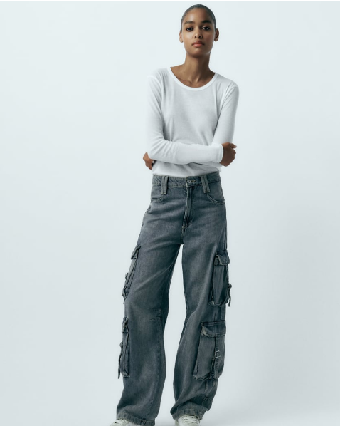 Не е задължително дънките да покриват пода. Вместо това обърнете внимание на карго дънките на испанската марка Bimba y Lola, които са с ласкава дължина до глезена, но предлагат всичко готино, което денимът на карго панталоните неизбежно притежава.